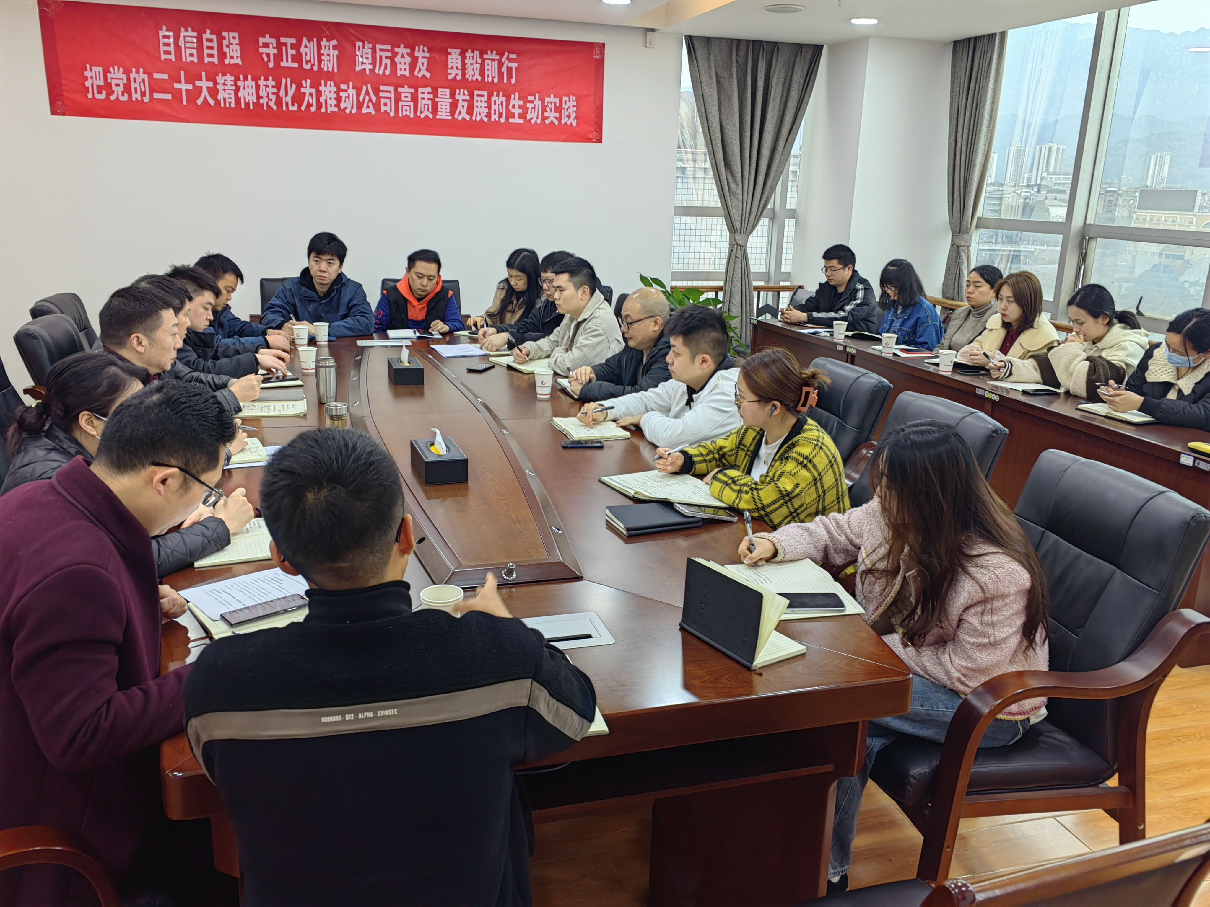 2023年3月9日,市擔(dān)保公司召開業(yè)務(wù)經(jīng)營分析會(huì),以“破百億”、“助千億”為主題查找了當(dāng)前工作中的短板與不足,謀劃部署下一步工作重點(diǎn),激勵(lì)員工進(jìn)一步凝聚共識(shí)、務(wù)實(shí)苦干、奮力推進(jìn)公司持續(xù)健康發(fā)展。