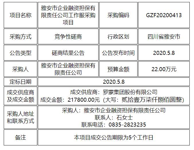工作服采購項目競爭性磋商結(jié)果公告